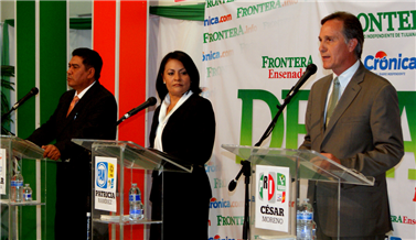 Al debate, que comenzó en punto de las 10:00 de la mañana, también asistieron Patricia Ramírez Pineda y Oscar Vega, candidatos a la presidencia municipal de Tecate por la coalición Unidos Por Baja California y el Partido Movimiento Ciudadano, respectivamente.