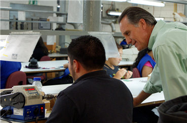Tecate, Baja California. 13 de Junio de 2013. Esta mañana, el candidato a la presidencia municipal de Tecate por la coalición Compromiso Por Baja California, César Moreno González de Castilla, visitó a los empleados de la empresa maquiladora de inductores y transportadores, PDT.